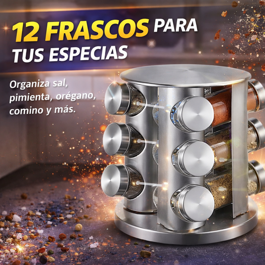 ¡Organiza tu cocina en segundos! Especiero Giratorio 360° con 12 Frascos